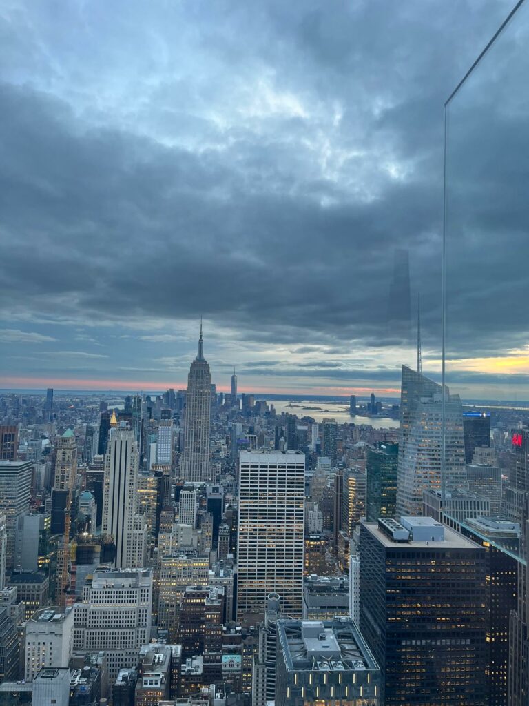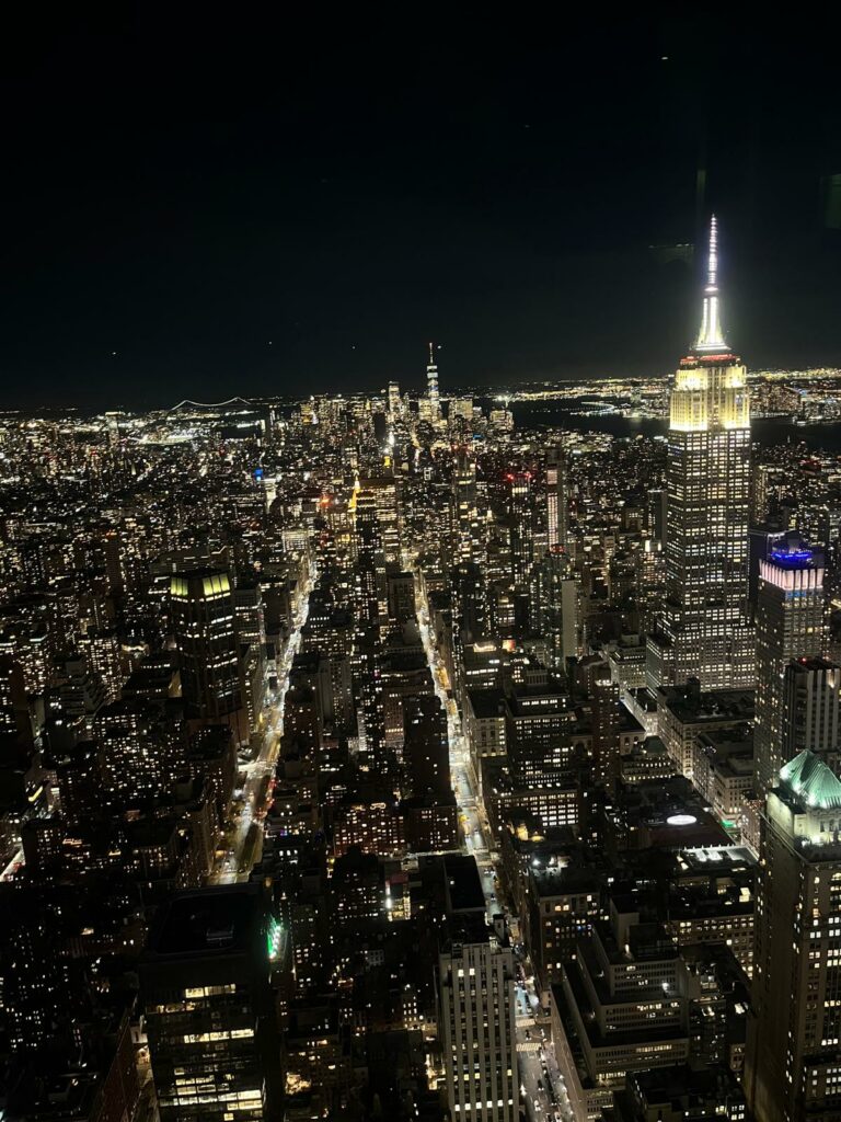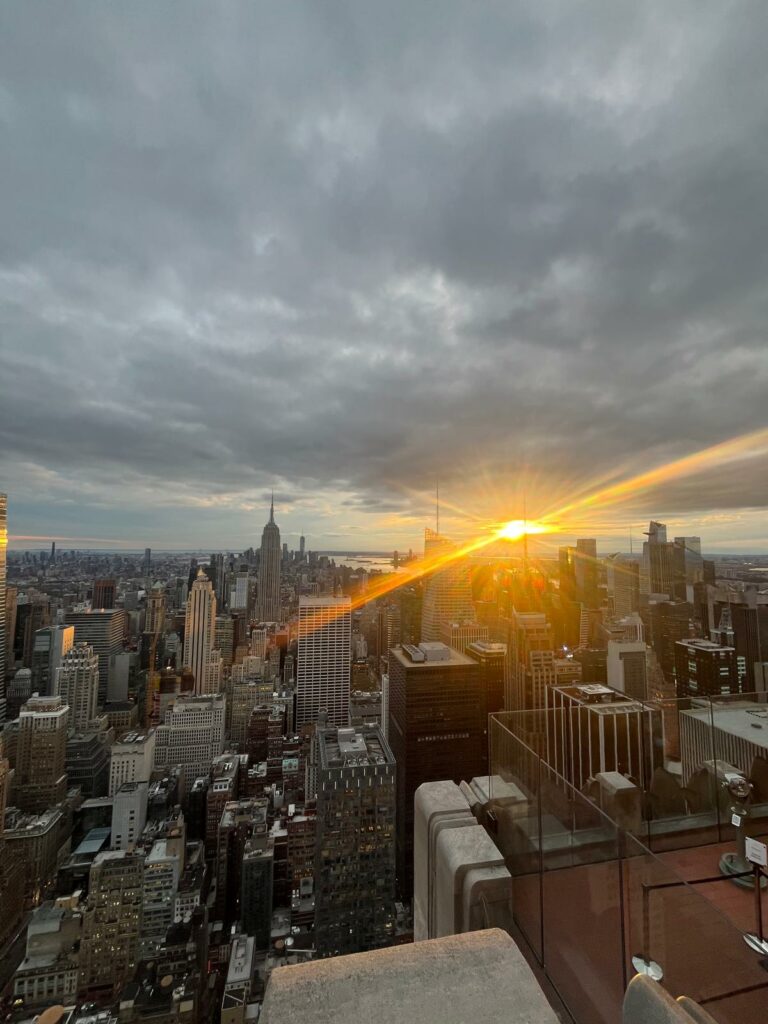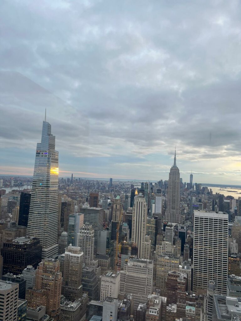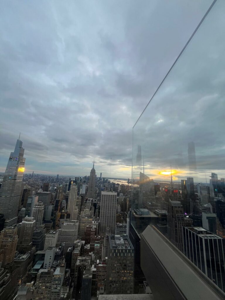 Si tu veux voir l’un des plus beaux panoramas de New York, il y a un endroit à ne pas manquer : le Top of the Rock, l’observatoire du Rockefeller Center. Moins bondé que l’Empire State Building, mais tout aussi spectaculaire, il offre une vue à 360° sur Manhattan, avec Central Park au nord et l’Empire State Building au sud. Une expérience magique, surtout au coucher du soleil.
