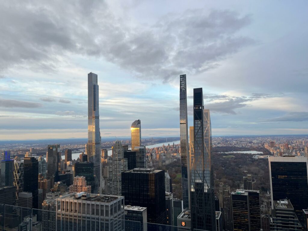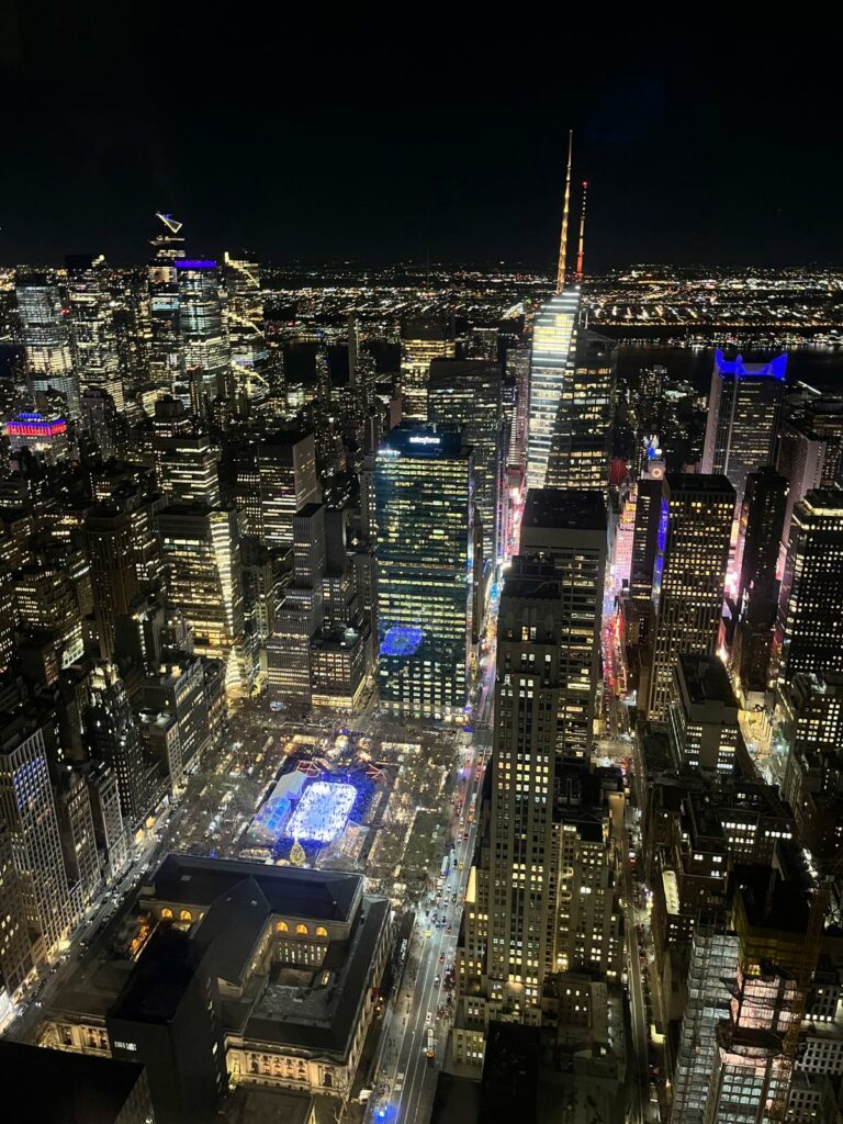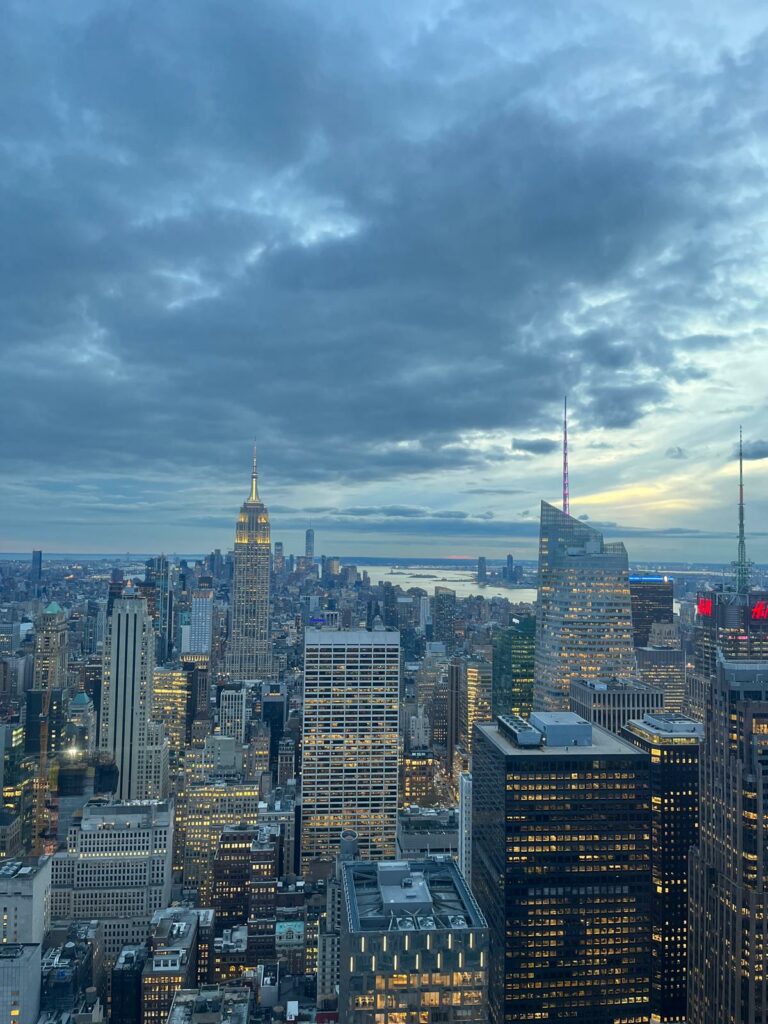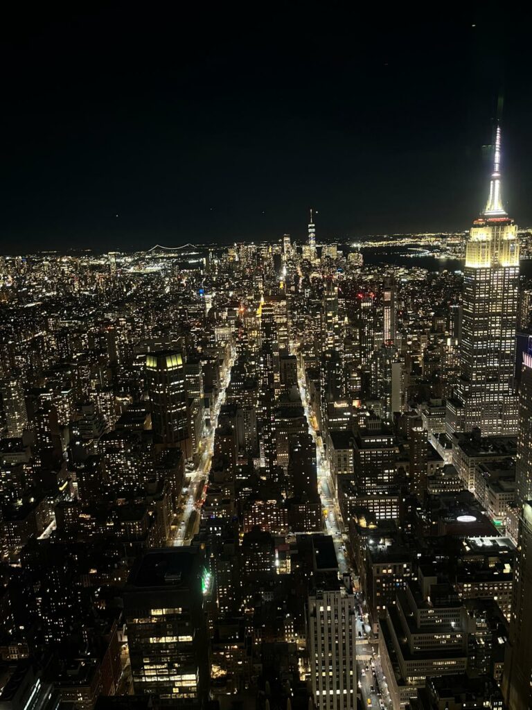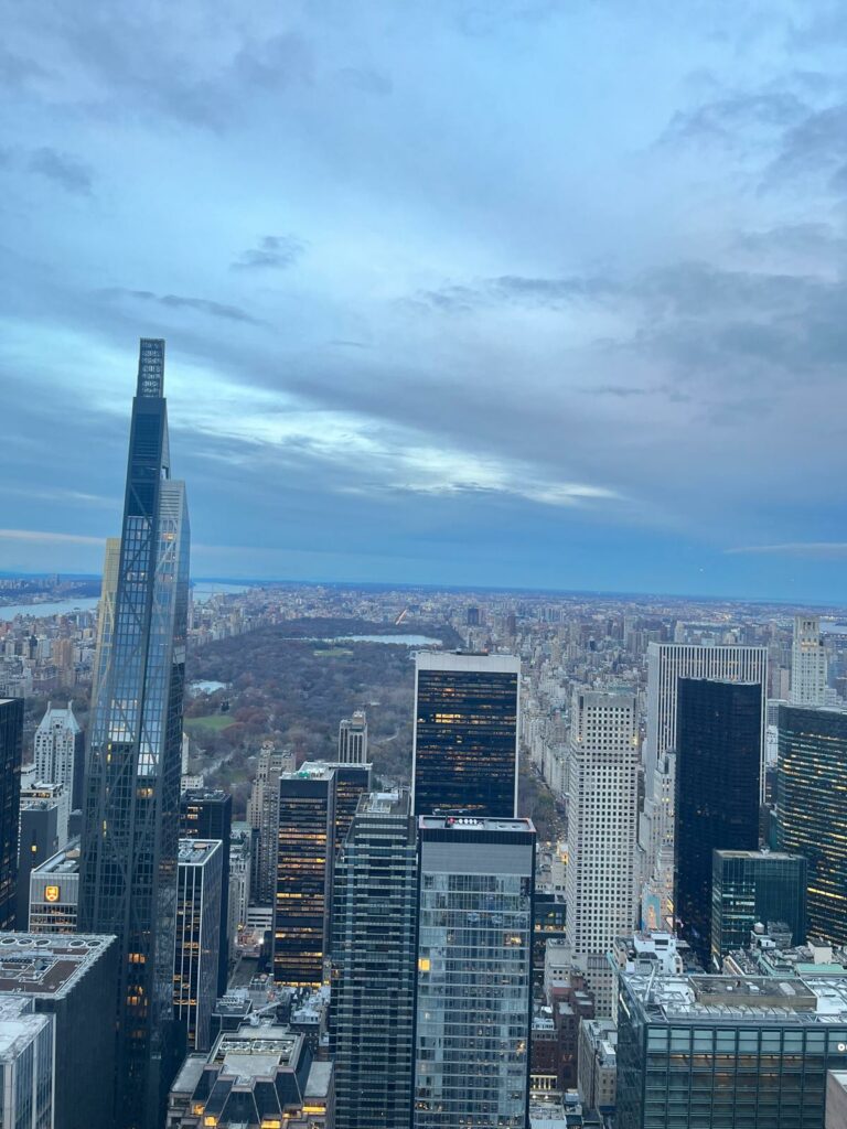 Si tu veux voir l’un des plus beaux panoramas de New York, il y a un endroit à ne pas manquer : le Top of the Rock, l’observatoire du Rockefeller Center. Moins bondé que l’Empire State Building, mais tout aussi spectaculaire, il offre une vue à 360° sur Manhattan, avec Central Park au nord et l’Empire State Building au sud. Une expérience magique, surtout au coucher du soleil.