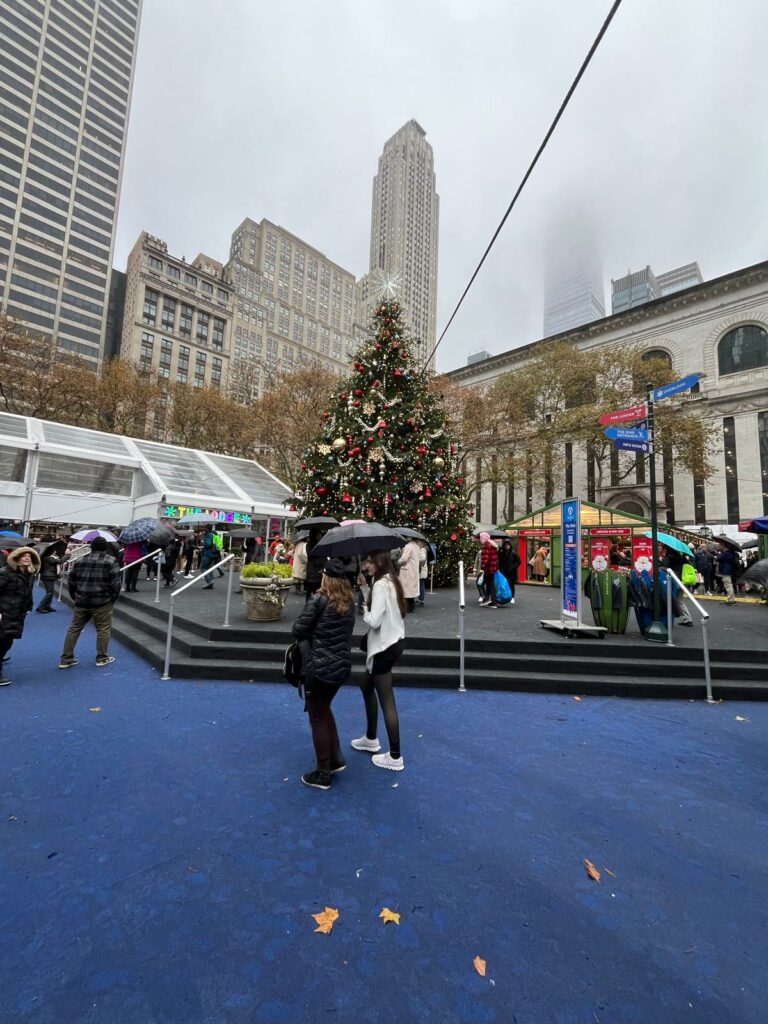 - Bryant park et le marché de Noël : nous étions tellement persuader de trouver un marché de noël typiquement européen que nous avons été déçu par l’ambiance et n’avons pas profiter. De plus ce jour là il pleuvait énormément.