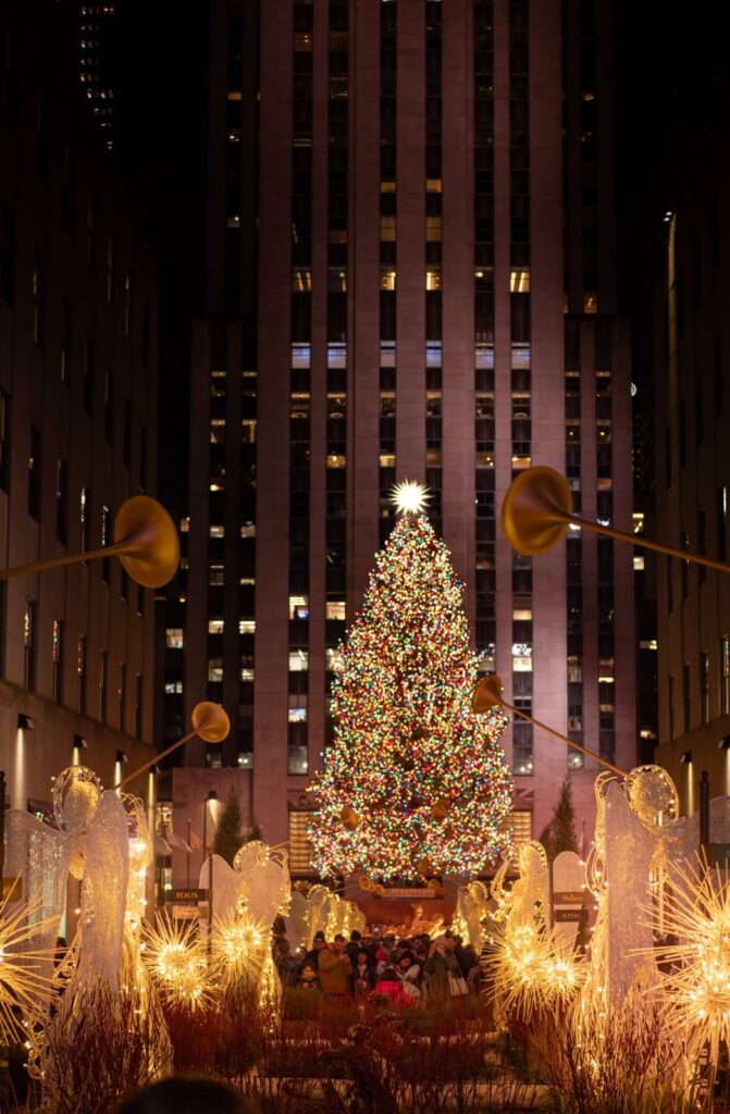 - 🎄Sapin du Rockefeller Center : généralement allumé de fin novembre, à début janvier tous les soirs.