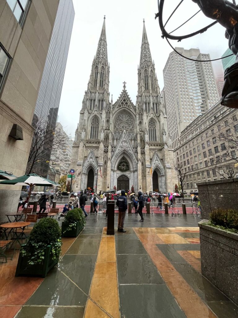 Juste en face du Rockefeller center, presque comme un secret à peine dissimulé entre les buildings, se trouve la cathédrale Saint Patrick. En pleine effervescence de Noël, elle offre un havre de paix. Nous avons fait le choix de ne pas y entrer mais vous pouvez bien sur visiter cette cathédrale.