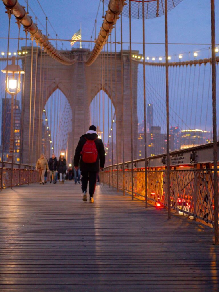 - Le Brooklyn Bridge : l’architecture, l’ambiance est tout simplement magique. Si tu as le temps, mon meilleur conseil est de t’y rendre au lever, au coucher du soleil et attendre que la nuit tombe sur la skyline.