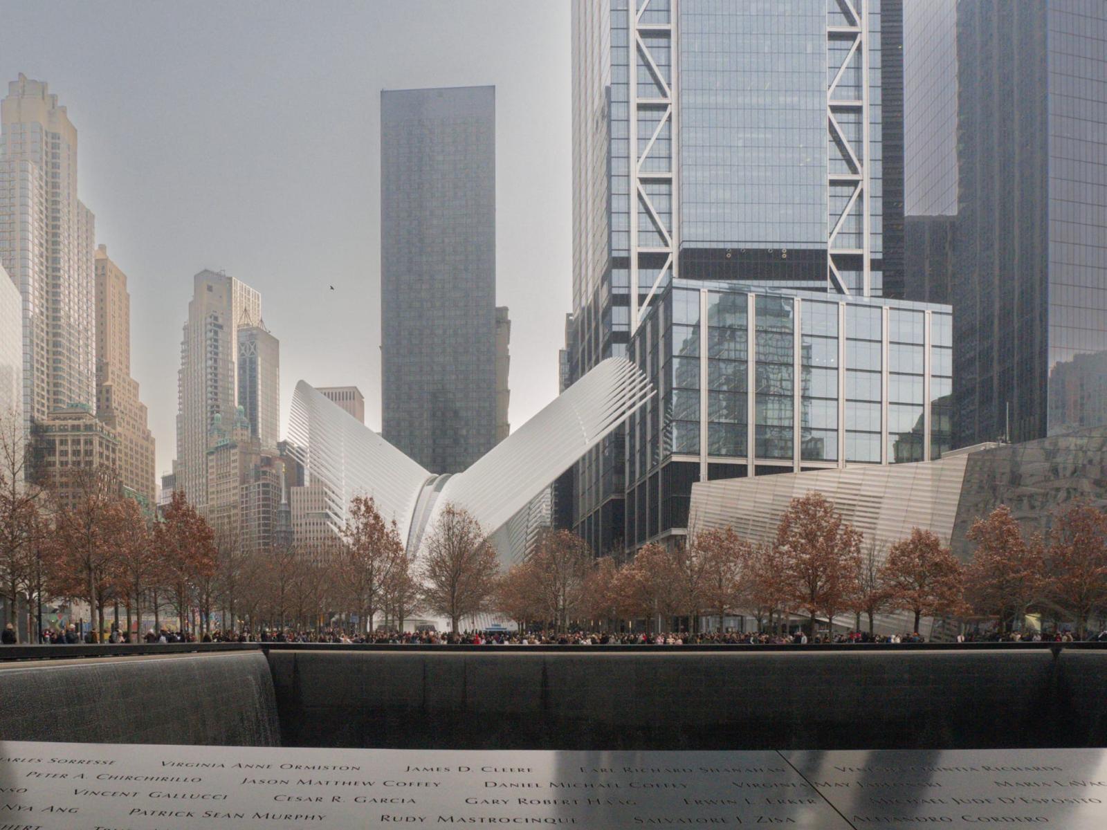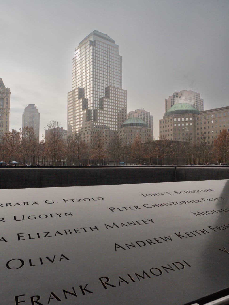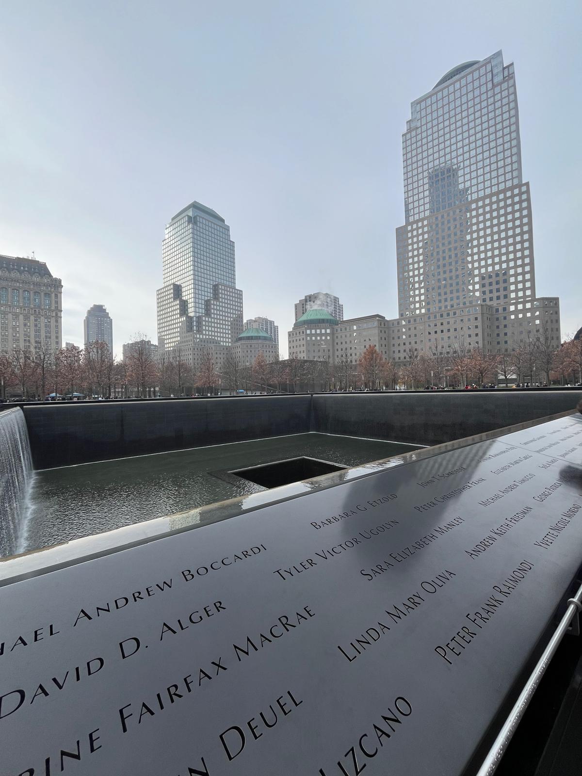 - Les Bassins de Réflexion : le mémorial comprend deux bassins de réflexion massifs situés dans les empreintes originales des tours jumelles. Autour de chaque bassin, les noms des 2 977 victimes sont gravés dans le bronze.