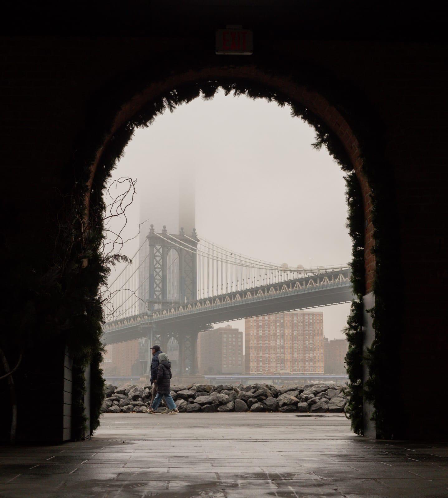 C’est un quartier emblématique de New York, situé entre le pont de Manhattan et le pont de Brooklyn, offrant des vues spectaculaires sur la skyline de Manhattan.
