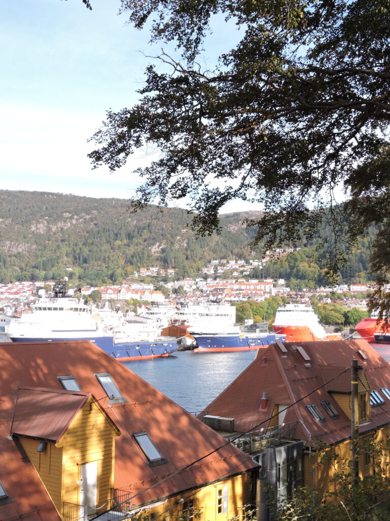 De l’autre côté on aperçoit le vieux port de Bergen où on peut admirer les va-et-vient de toute sorte de bateaux plus impressionnant les uns que les autres.